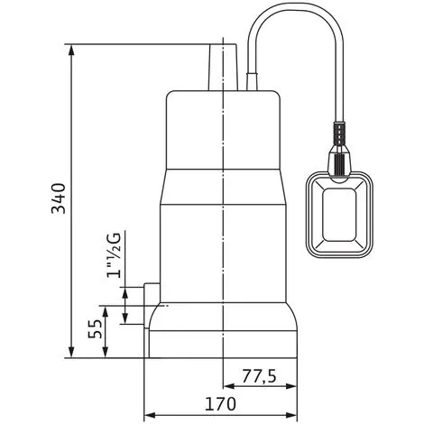 Pompe avec interrupteur à flotteur raccordé pour l’évacuation des eaux faiblement polluées, des eaux pluviales, des eaux de drainage et de lavage.
