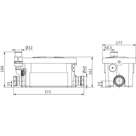 La station HiDrainlift 3-24 permet l’élimination automatique des eaux usées d’une douche et d’un autre raccord (lavabo ou bidet). Idéale pour le pompage d’eaux usées sans matières fécales, sans fibres, sans graisse et sans huile.