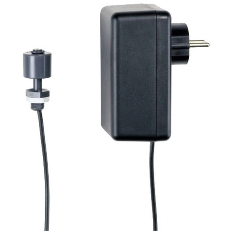 Système d’alarme indépendant du secteur avec fiche à contact de protection, alarme acoustique et contact sec. Mini-interrupteur flottant avec 3 m de câble (2 X 0,75 mm2) monté sur l’appareil.